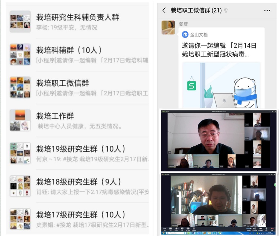 平时,在科研工作之外,张彦还一直承担着“实验室管理员”的工作,主要负责实验室试剂、耗材出入库,卫生安全管理,以及科室信息发布等工作。栽培中心职工、科辅和各级研究生总共六十余人,疫情爆发后,所里先后多次统计人员离青返青时间,需要每天定时上报部门全体人员健康状况。张彦主动承担起了这项繁琐而细致的任务,为简化大家填报流程,快速、准确统计上报数据,张彦积极探索各种线上办公方式,最后将微信及WPS协同办公功能有机结合,应用于每日的信息收集工作中,大大提高了办事效率。此外,张彦还借助小鱼易连平台,协助领导组织了多次云视频会议及课题研讨,保证了职工在居家办公状态下科研工作的有序开展和推进。